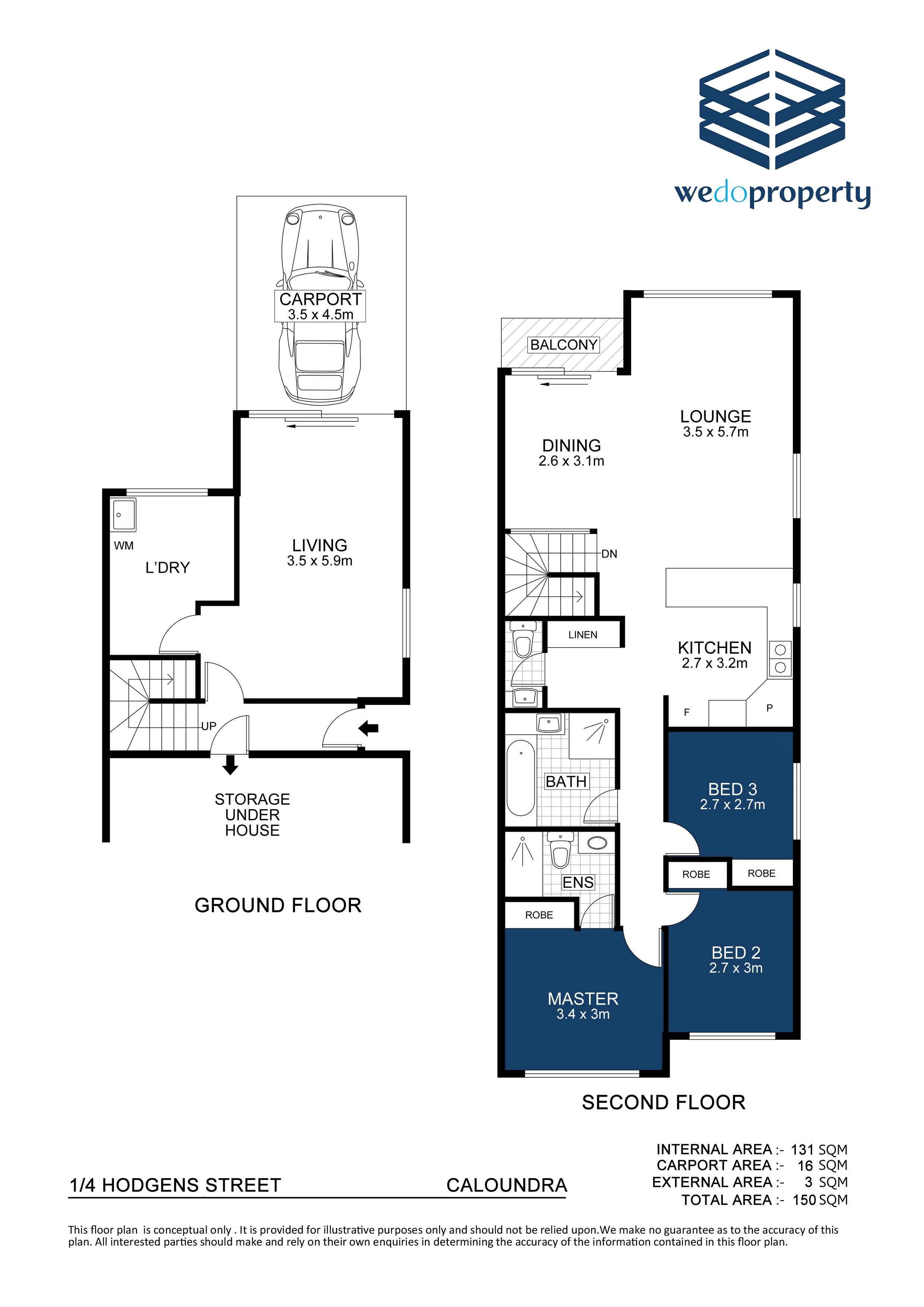 – 2 Bathrooms, including an ensuite to the master bedroom