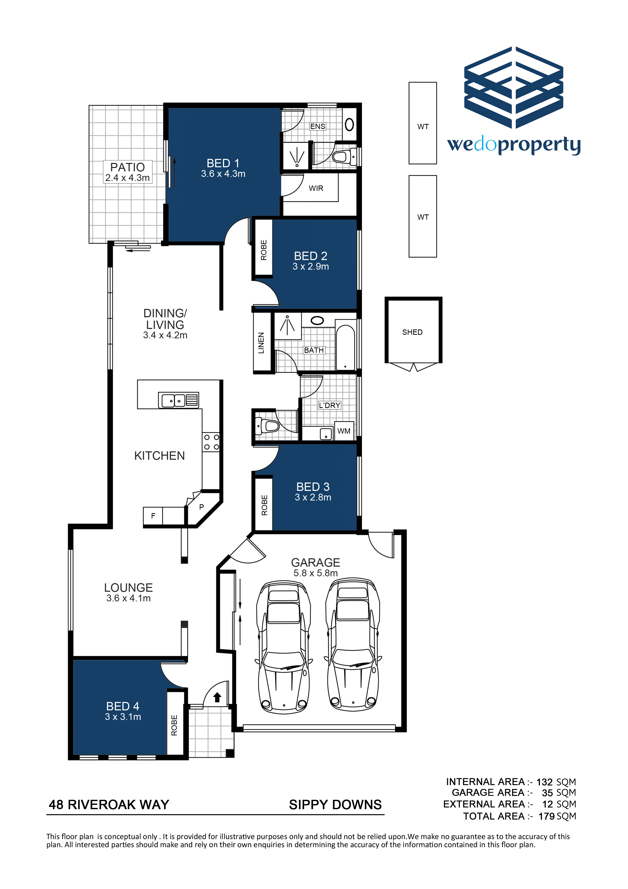 • 4 spacious bedrooms, all featuring built-in robes and ceiling fans